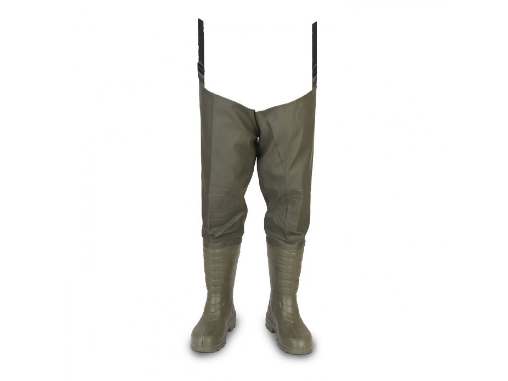 Легкиe (около 1,4 кг) . Легкий вес рыбацких сапог достигнут за счет сочетания высоких сапог удобной формой из инновационного материала ЭВА (этиленвинилацетат – лёгкий, эластичный и упругий материал, обладающий хорошими амортизирующими свойствами и низкой теплопроводностью) с водонепроницаемой винилискожей (ткань-ПВХ) . Герметизация всех швов гарантирует отсутствие протекания воды по всей длине сапога. Наколенники сапог усилены дополнительной накладкой, что делает их более износостойкими, и в тоже время смягчает упор на колено.