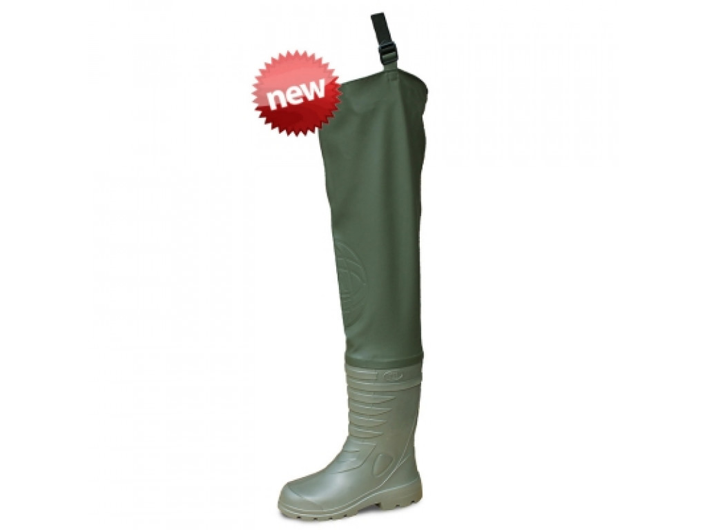 Новая модель сапог рыбацких изготовлена на основе сапог из материала ЭВА и ткани-ПВХ. За счет такого сочетания компонентов эта модель остается водонепроницаема, является теплой и очень легкой. Области колен усилены наколенниками в виде дополнительной накладки из ПВХ-ткани для прочности и смягчения при опоре на колено.