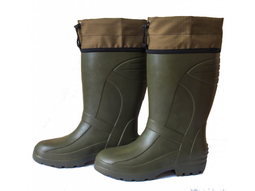 Материал сапог абсолютно водонепроницаем Удобные колодки обеспечивают комфортную носку обуви. Манжета изготовленная из водоотталкивающей ткани Оксфорд, фиксируется на ноге с помощью шнурка и стопора, что препятствует попаданию снега, воды и грязи внутрь. Подошва из материала ЭВА обладает не скользящим эффектом Основными характеристиками обуви из ЭВА являются: низкая теплоотдача, сохранение эластичности материала при низких температурах, минимальный вес, полная водонепроницаемость. Комплектуются вкладным чулком