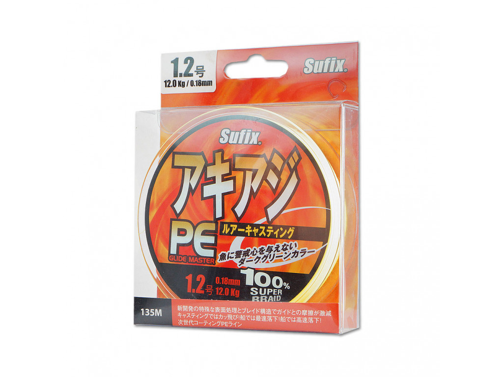 Производителем лески плетёной Sufix PE Glide Master, предусмотрена возможность выбора различных цветов и их сочетаний. От однотонного прозрачного варианта, до многоцветной плетенки со сменой цвета через каждые 20 метров.