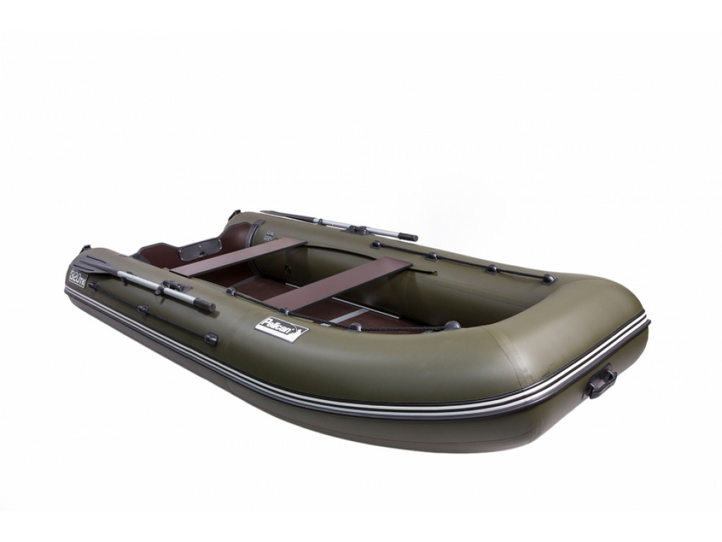 Лодка Пеликан 320ТК прежде всего отличается высоким комфортом У лодки есть стационарный транец, позволяющий установить мотор мощностью до 12 л/с, благодаря чему лодка легко и быстро выходит на глиссир.
