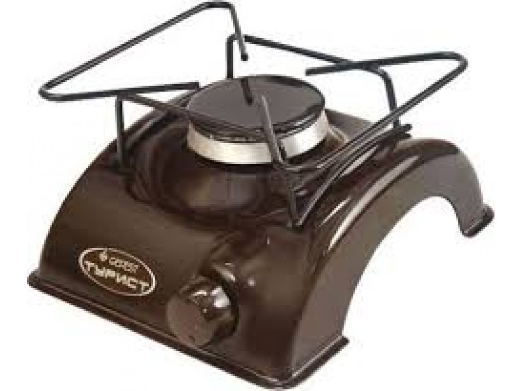 Портативная газовая плитка. Благодаря удобству использования и низкой цене является самой популярной моделью. Работает от бытового газового баллона. Плита имеет фиксированное положение малое пламя, корпус обработан термостойким покрытием