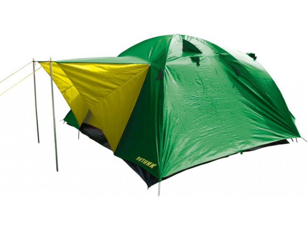 кемпинговая палатка; 3-местная; внутренний каркас; дуги из стеклопластика; 2 входа / одна комната; высокая водостойкость тента; навес над входом;